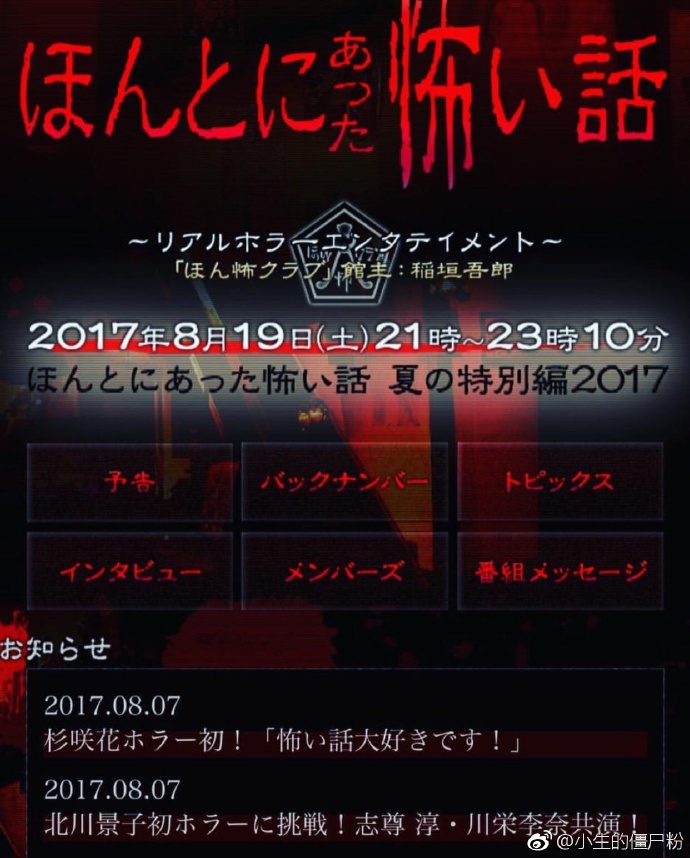 优酷视频网友: 毛骨悚然撞鬼经2017夏季特别篇主要是由手越祐也 野村周平 遠藤憲一 北川景子 志尊淳 等主演,由执导。