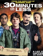 剧情介绍及相关问题:Nick(杰西·艾森伯格 Jesse Eisenberg 饰)是小镇上的一个普通披萨送餐员,他一直都过着平凡的生活。一天,他的平凡生活和两个有计划犯罪的罪犯——Dwayne(丹尼·麦克布耐德 Danny McBride 饰)和Travis(尼克·斯旺森 Nick Swardson 饰)碰撞到一起。疯狂的两个罪犯绑架Nick去抢劫银行。就在这短短的半个小时里,Nick在他的朋友Chet(阿兹·安萨里 Aziz Ansari 饰)的帮助下,完成了不可能完成的任务。时间滴答滴答的在流走,这两个罪犯必须同警察、雇佣的刺客还有别人手中拿着的喷火器,甚至是他们两人自己出现的分歧做斗争......