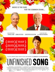 剧情介绍及相关问题:亚瑟(特伦斯·斯坦普 Terence Stamp 饰)的妻子玛丽昂(瓦妮莎·雷德格瑞夫 Vanessa Redgrave 饰)虽然身患绝症,却一直坚持参加小镇上的老年合唱团。这个由年轻音乐教师伊丽莎白(杰玛·阿特登 Gemma Arterton 饰)在工作之余组织起来的合唱团不仅是镇上老年人们消磨时光的好去处,更为他们结交新朋友提供了机会。可是固执的亚瑟并不支持也不理解玛丽昂唱歌,他只希望爱妻可以安心在家养病。但亚瑟终归执拗不过玛丽昂,即使在生命最后的时光里,玛丽昂也如愿参加了合唱比赛。小镇的老年合唱团通过了比赛的初赛,玛丽昂在赛后安详去世。虽然伊丽莎白和其他老人都想帮助亚瑟走出悲伤,但倔强的亚瑟不仅将他们拒之千里之外,甚至对亲生儿子詹姆斯(克里斯托弗·埃克莱斯顿 Christopher Eccleston 饰)都恶言相加。亚瑟本打算将自己永久关闭在失去爱妻的悲痛之中,但几次与伊丽莎白意外的对话让他慢慢理解了玛丽昂生前对合唱团热爱的缘故原由,也开始反思自己与儿子之间的关系。渐渐的,亚瑟好像敞开了心扉。他决心为了去世的玛丽昂开始迎接新生活。