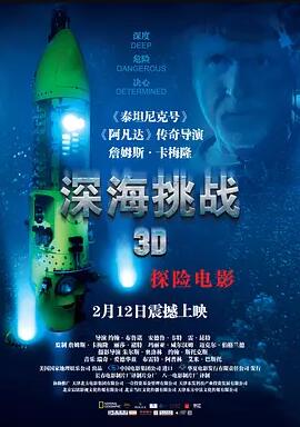 剧情介绍及相关问题:电影记录了詹姆斯·卡梅隆驾驶单人深潜器“深海挑战者”号成功下潜至世界海洋的最深处――马里亚纳海沟的全过程。卡梅隆下潜的深度是35756英尺(约合10898米)——是全球海洋分庭抗礼的深度极限。在这部纪录电影中,也讲述了研发深潜器暗地里的故事。在万米海底,卡梅隆停留了六个小时,用高清3D摄影机拍摄下来,而他为这次下潜热身的其他十几次潜水也将被剪进这部90分钟的3D纪录片里。